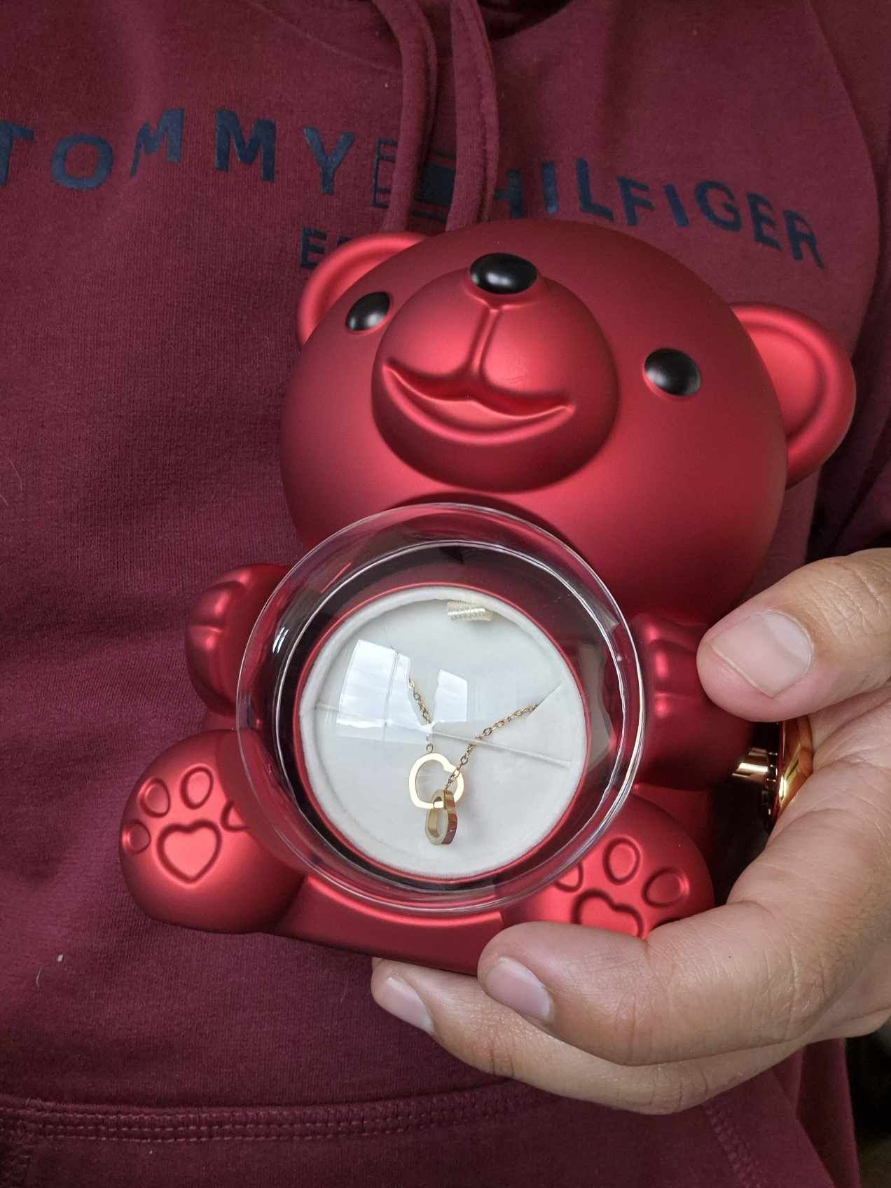 Mi pareja quedó encantada con el osito. Es un regalo elegante y significativo. Definitivamente lo recomiendo